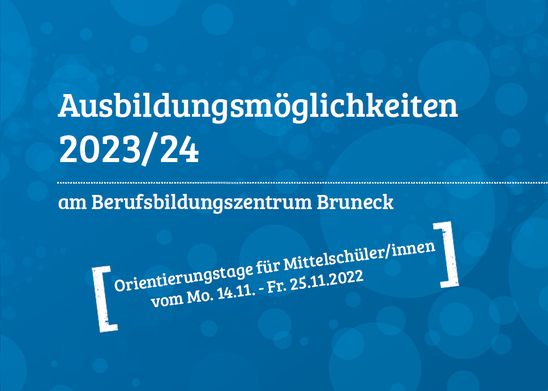 Orientierungstage für Mittelschüler/innen 24.11.2022 | News Dokumente zum Herunterladen Ausbildungsmöglichkeiten 2023-2024 (1249 KB) »