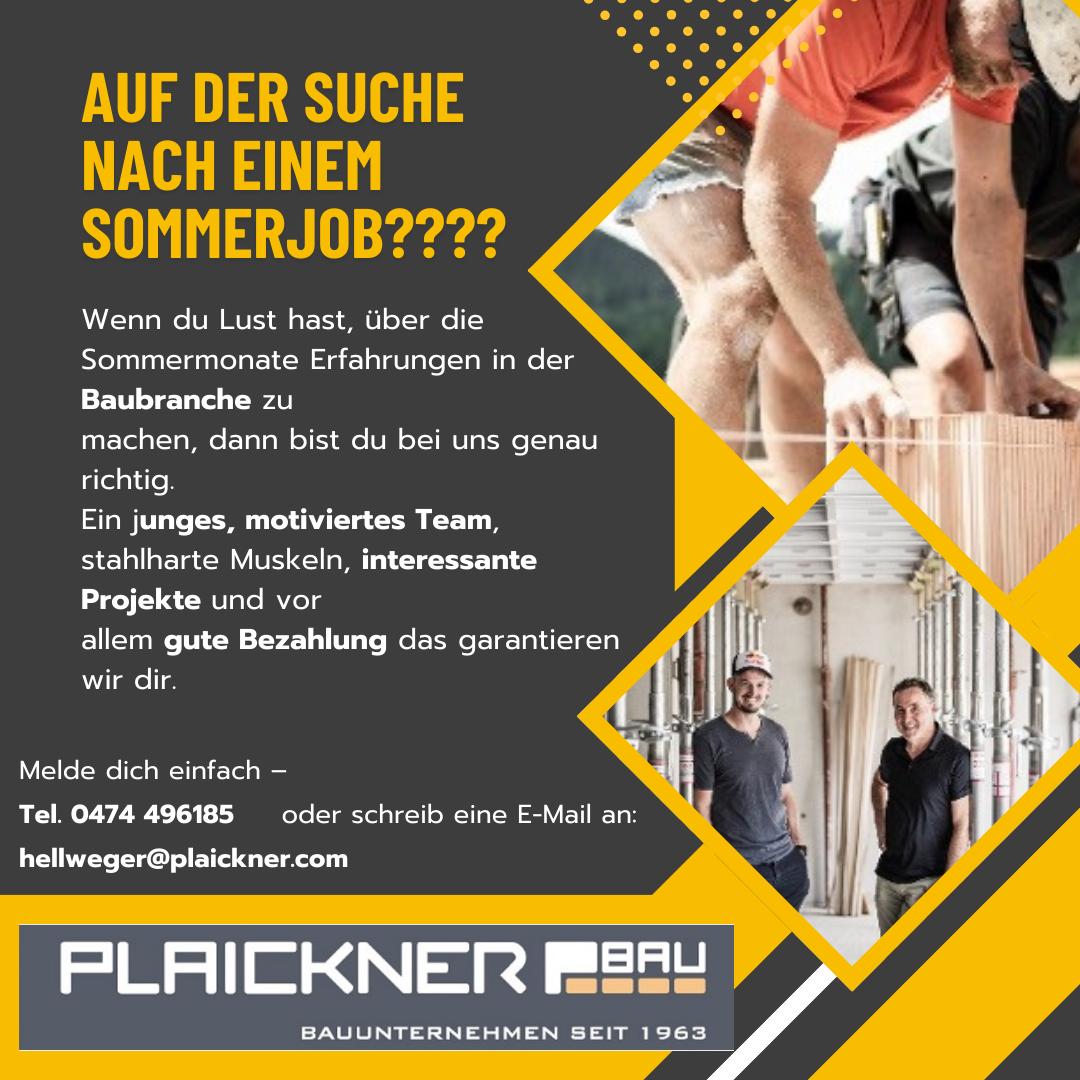 Plaickner Bau in Rasen sucht 17.03.2026 | Stellenmarkt Sommerpraktikanten (m/w/d) Dokumente zum Herunterladen Sommerjob.jpg (147 KB) »